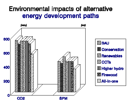 These increases in energy demand would place heavy loads on the local, regional and global environment, to the extent that the analysis found the BAU scenario to be unsustainable. The unacceptable environmental impacts ranged from increased indoor and urban air pollution leading to seriously worsened health effects, deforestation and regional air pollution.