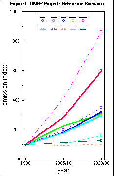 Comparing the UNEP and LBL approaches, it appears that the UNEP approach has a tendency to impose a larger variation in reference emission projection with an upward "push" if countries assume biomass and hydropower to play a low role in the reference and with a downward "push" if many profitable efficiency improvements are assumed to be implemented in the reference.